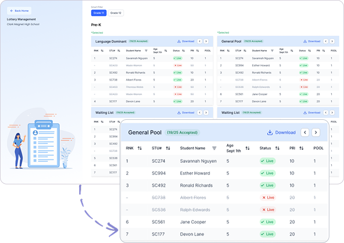 Easily manage applications, run automated student lotteries, and give families a clear, mobile-friendly experience powered by real-time data and district-specific rules.