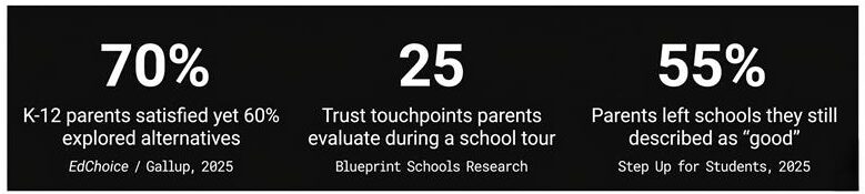 Here’s a data point that should stop every enrollment director cold: 70% of K-12 parents describe themselves as “completely” or “somewhat” satisfied with their child’s school — yet 60% of those same parents actively explored alternatives in the past year.